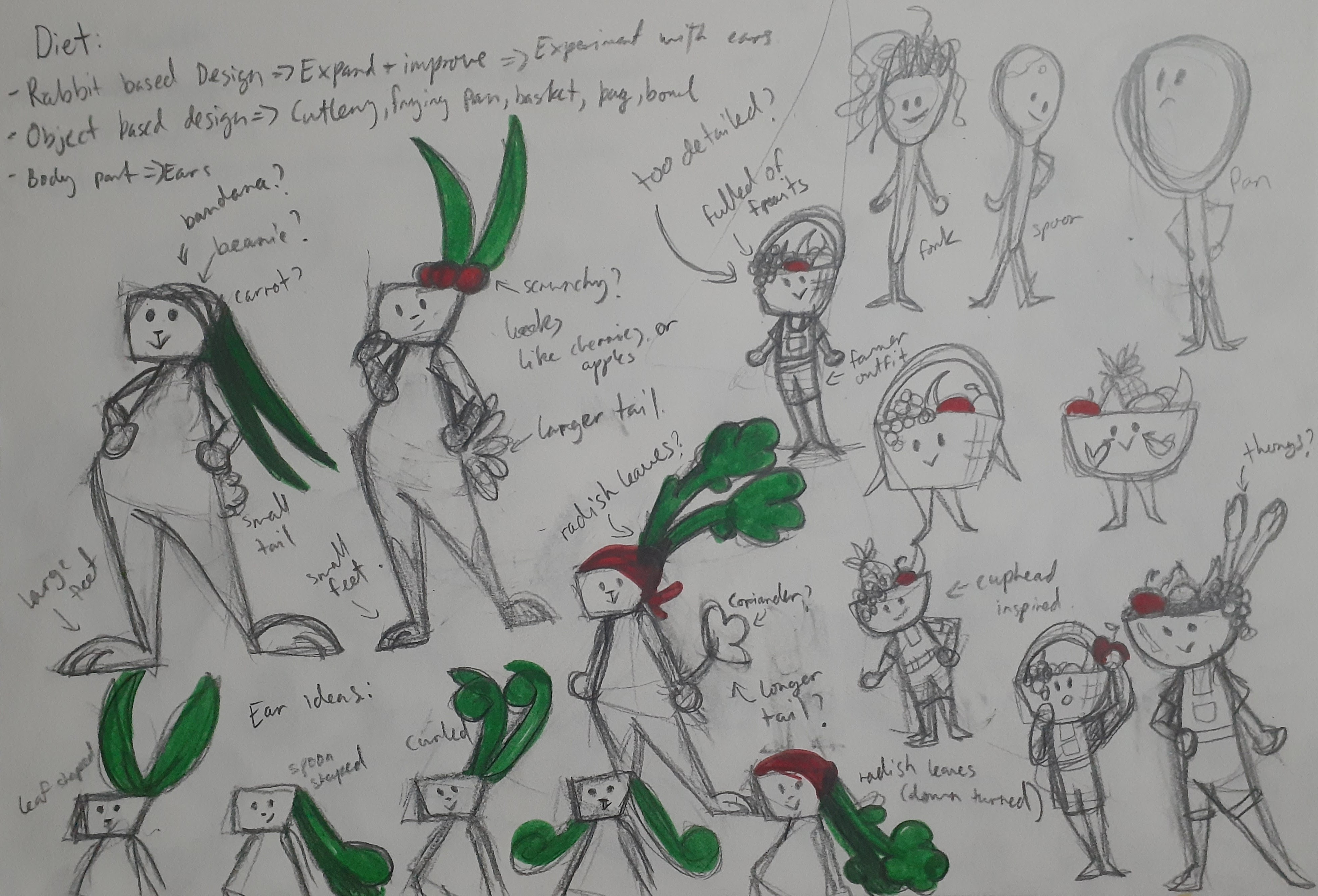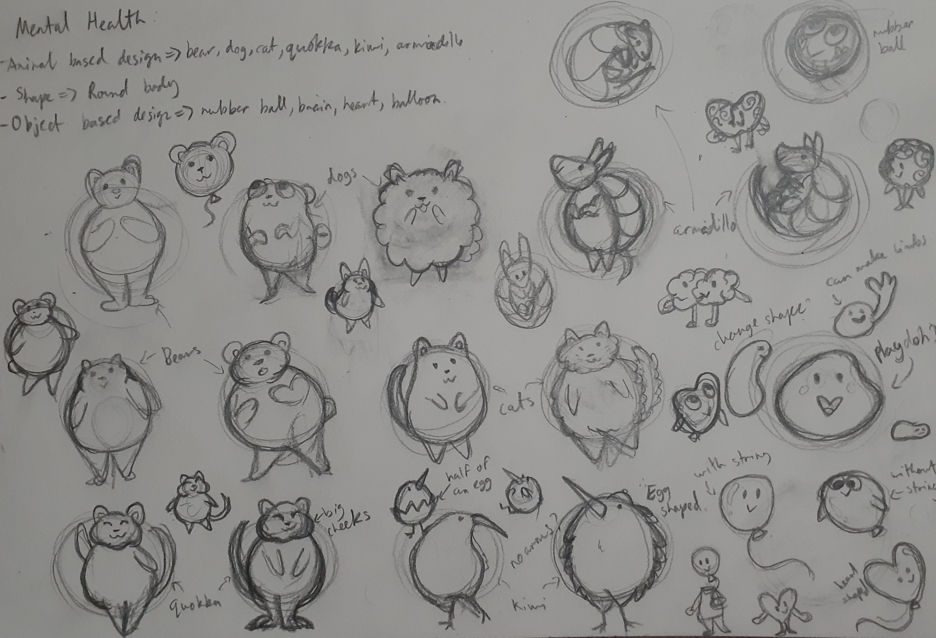 I experiemented with the character shape, colours and concept to exploring how the character can represent their individual health factor (Physical, diet, cognitive, social activity, sleep & mental health).