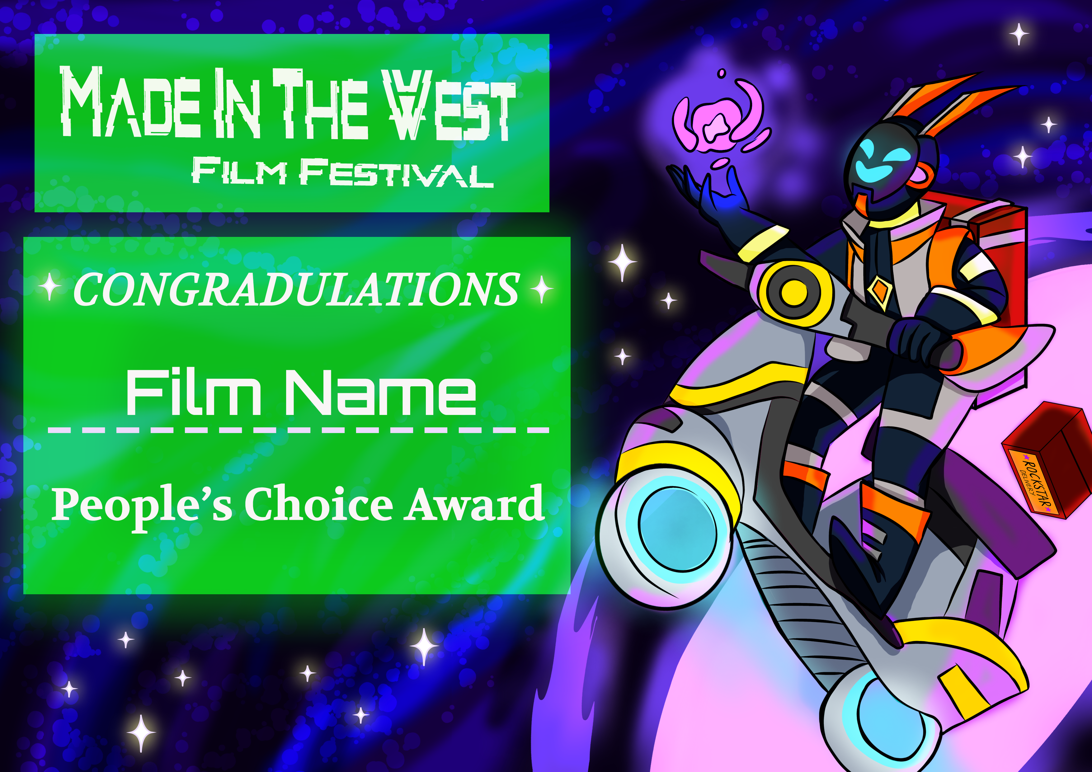 A pitched visual identity concept for the 2023 Made in the West Film Festival. This campaign theme “New Worlds”, saw the concept of an astronaut in outer space holding an orb bursting with new ideas and light, symbolic of the discovery and creation of new ideas within Western Sydney.