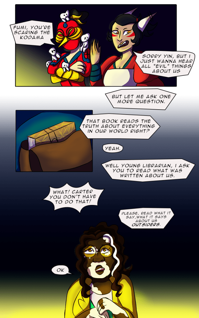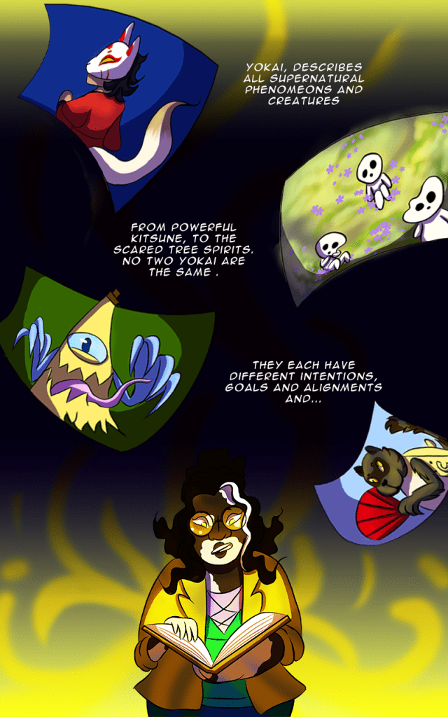 This comic is centered around Japanese folklore and mythology, particularly Yokai and how the lines between good and bad are blurred for these creatures. This project allowed me to test the blending of mythical characters with modern themes and storytelling.